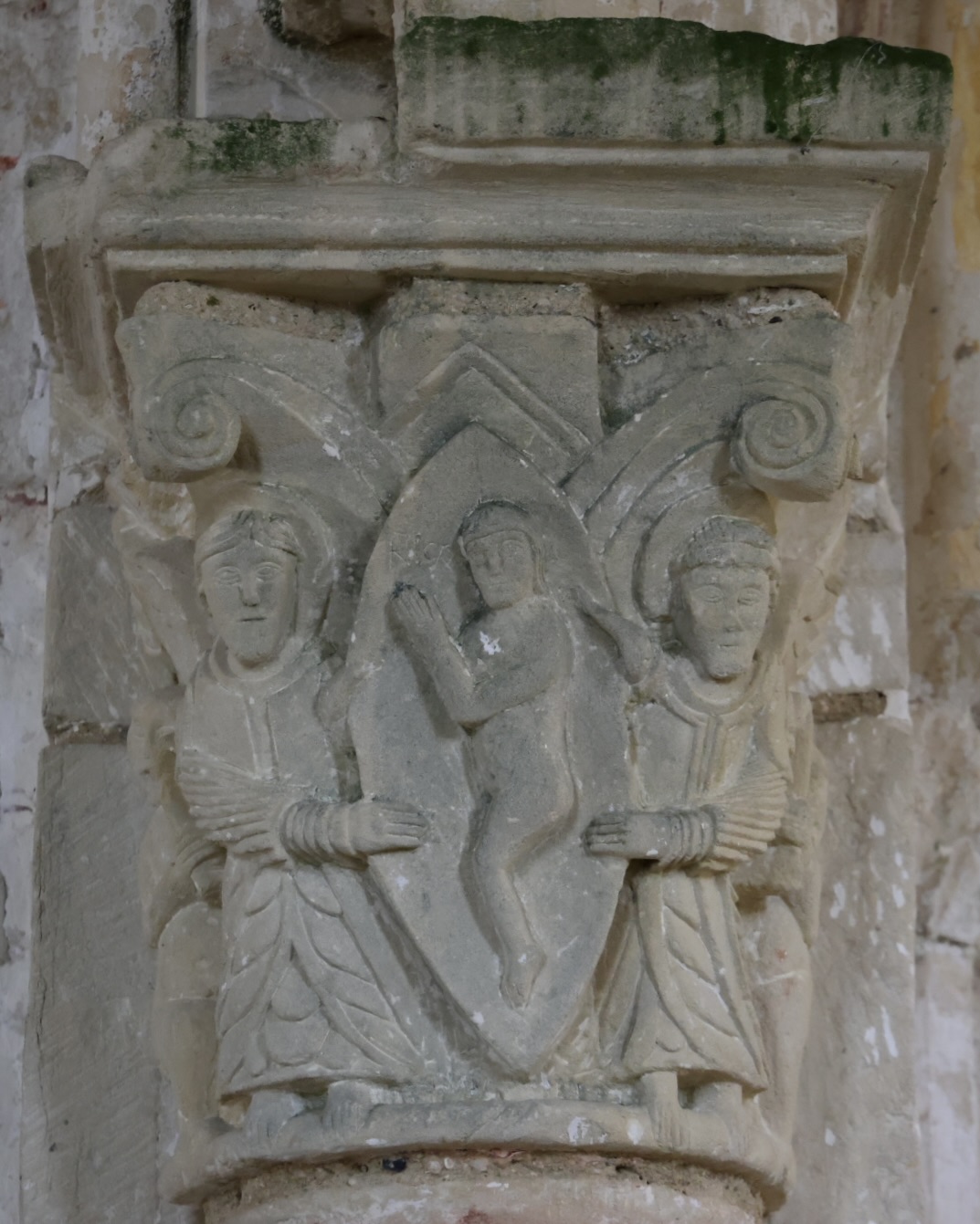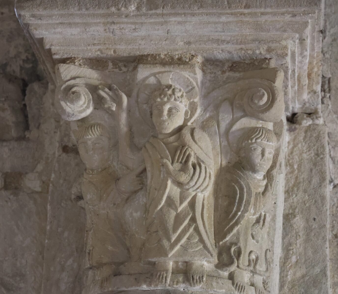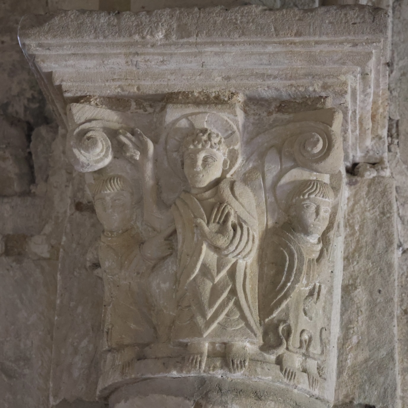 ここは、交差部に残る柱頭彫刻が良いです。