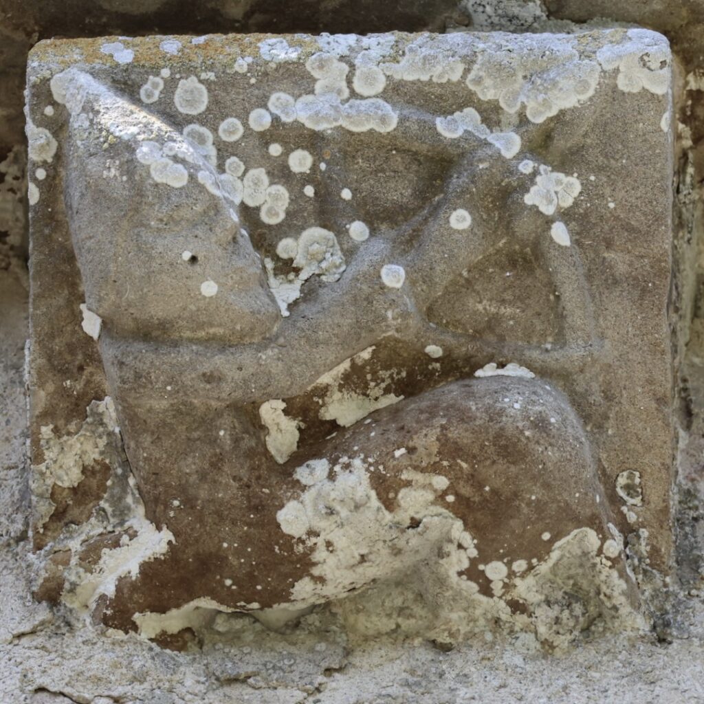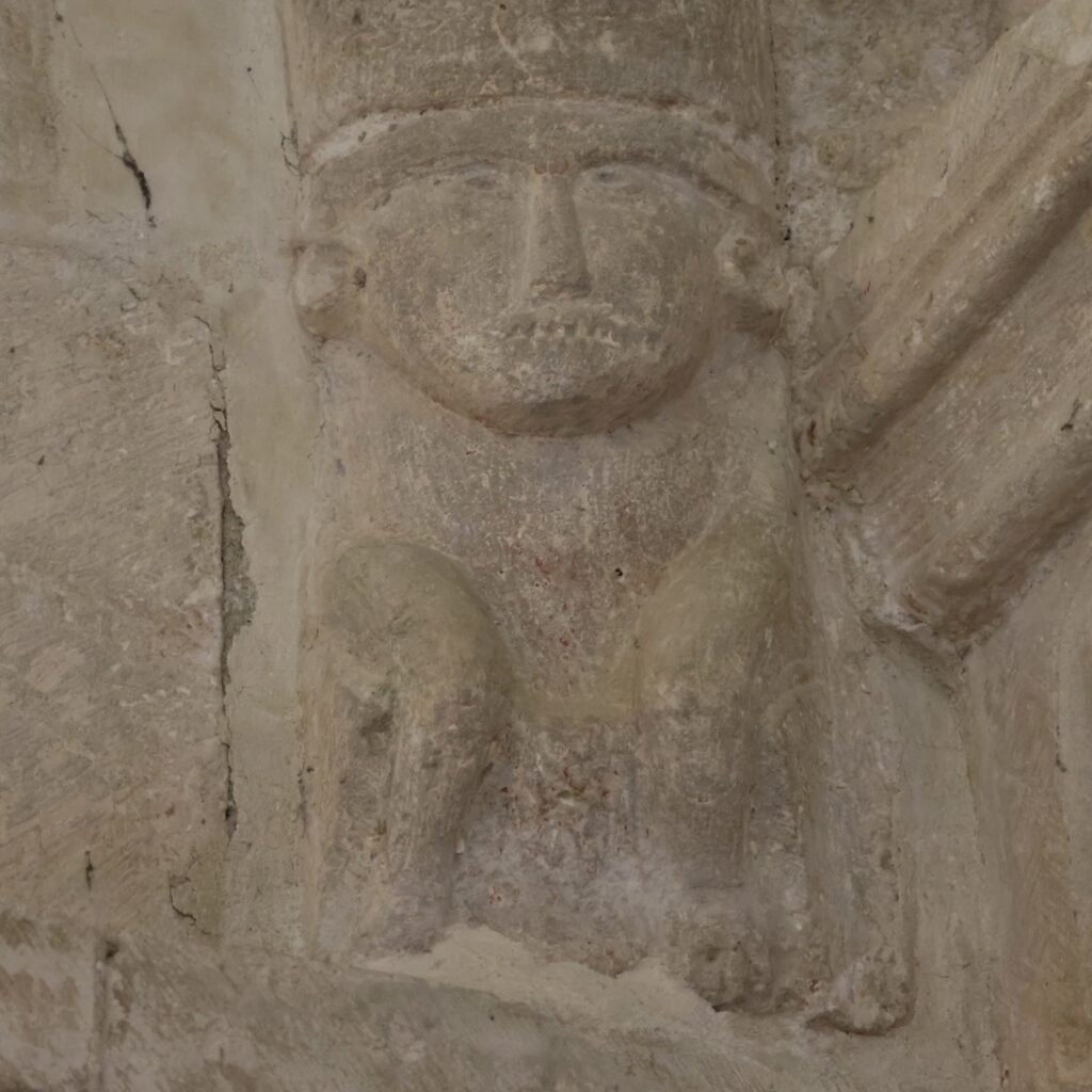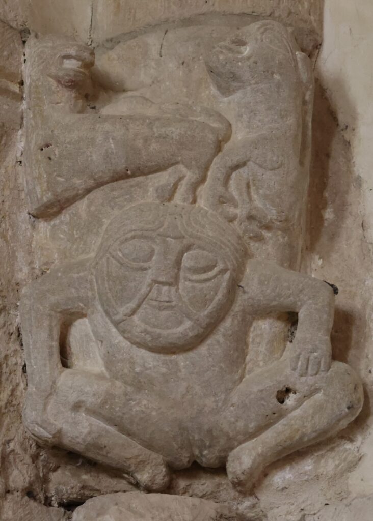 第1柱間の左(北)側には、二本の小さな足と大きな頭を持つ男性。
