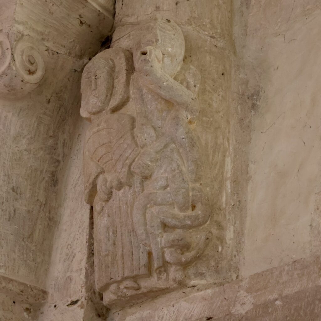 こうした基部まわりの彫刻は、サン=ガブリエル(Saint-Gabriel)にもあります。でも、彫刻の特徴は異なります。