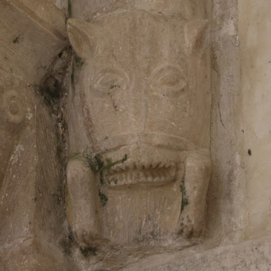 110個ある持ち送り(屋根の軒下に置かれた石)の数、精巧さ、多様性を鑑賞せよ。幾何学模様や人物の頭部を持つものもあるが、圧倒的多数は動物の頭部を特徴としている。