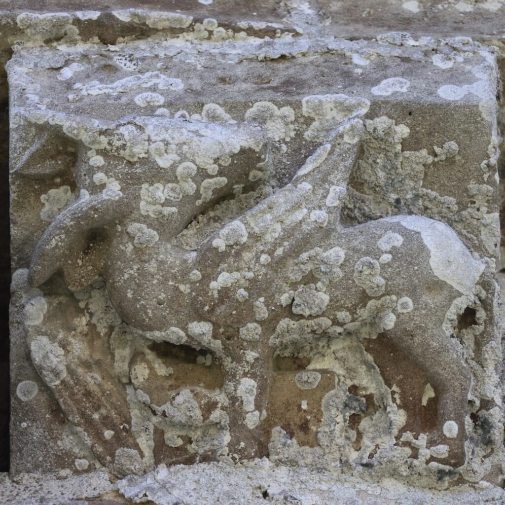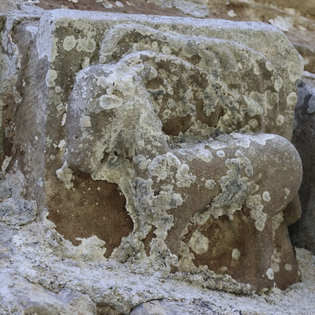 右(南)側の柱頭には、2頭の四足獣が彫られています。