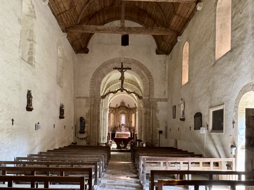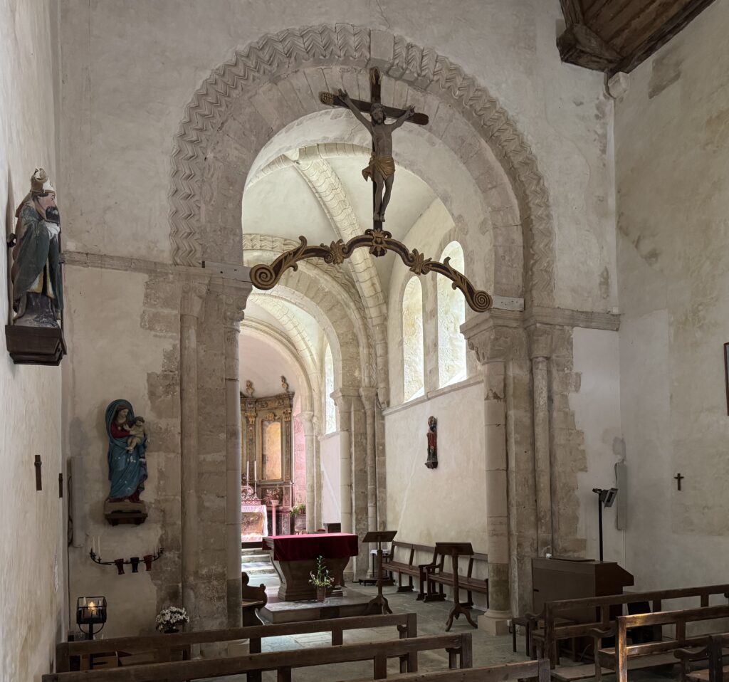 後陣の二つの拡大された窓と再建された鐘楼の窓を除いて、ほぼ純粋なロマネスク様式です。
