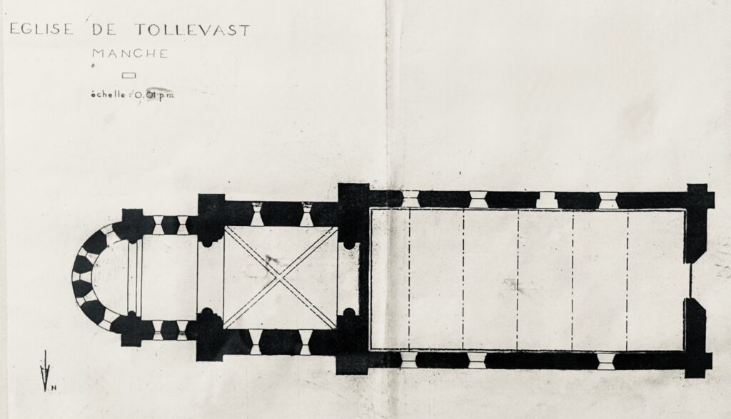 1066年、アンリ・ド・トルヴァ卿(Seigneur Henri DE TOLLEVAST)はギヨーム公と共にイングランド征服へ赴いた。ヘイスティングスの戦いで顕著な功績を挙げ、ワイト(Wight)島の大規模な領地を授かった。この土地の収入で、彼は自らの領地にこの教会を建立した。建設は11世紀末に始まり、12世紀初頭に完成した。