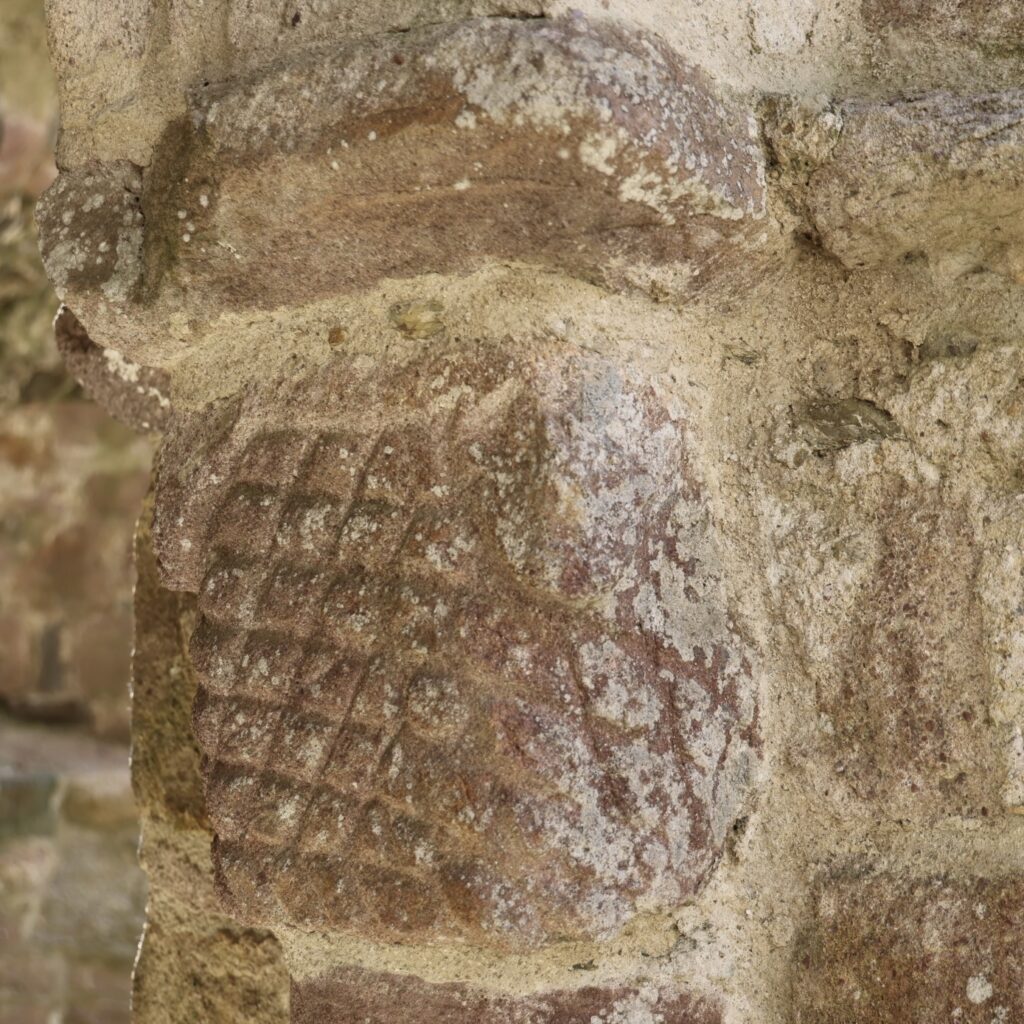 柱頭には、簡素な彫刻があります。柱頭を三つご紹介します。