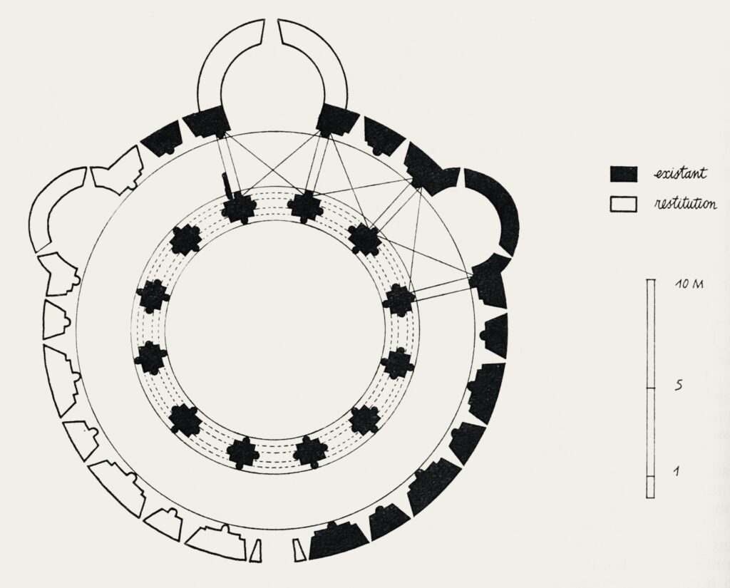 今日では、建築上の細部や彫刻装飾から、専門家らは11世紀末から12世紀初頭にかけて、エルサレムの聖墳墓教会の円形礼拝堂を模して建てられたと推測している。