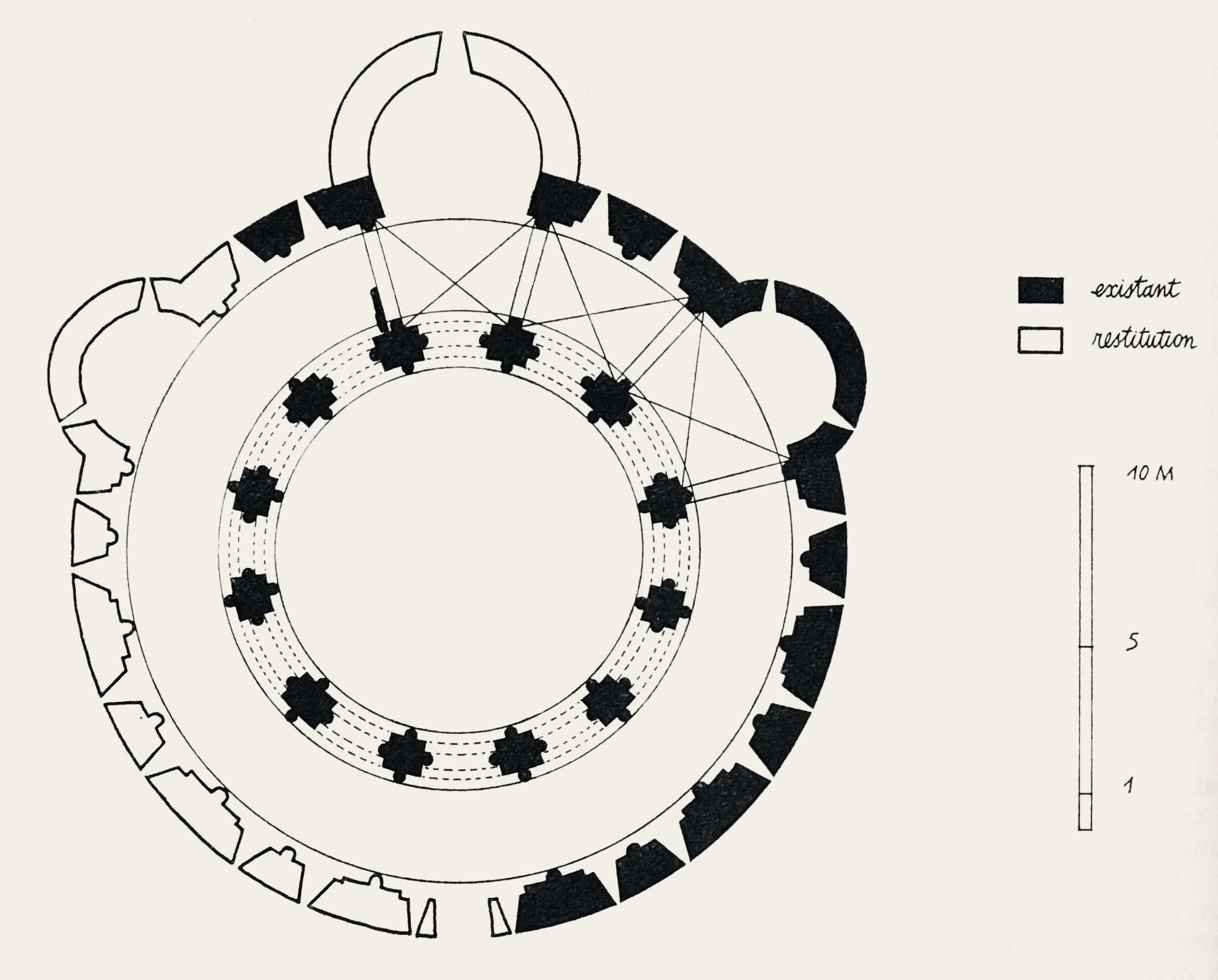 文書による証拠がないため、この廃墟となった建造物は幾つかの空想的な解釈の対象となってきた。初期の考古学者たちは、その円形に魅了され、偶像や太陽を祀る古代の神殿と見なした。