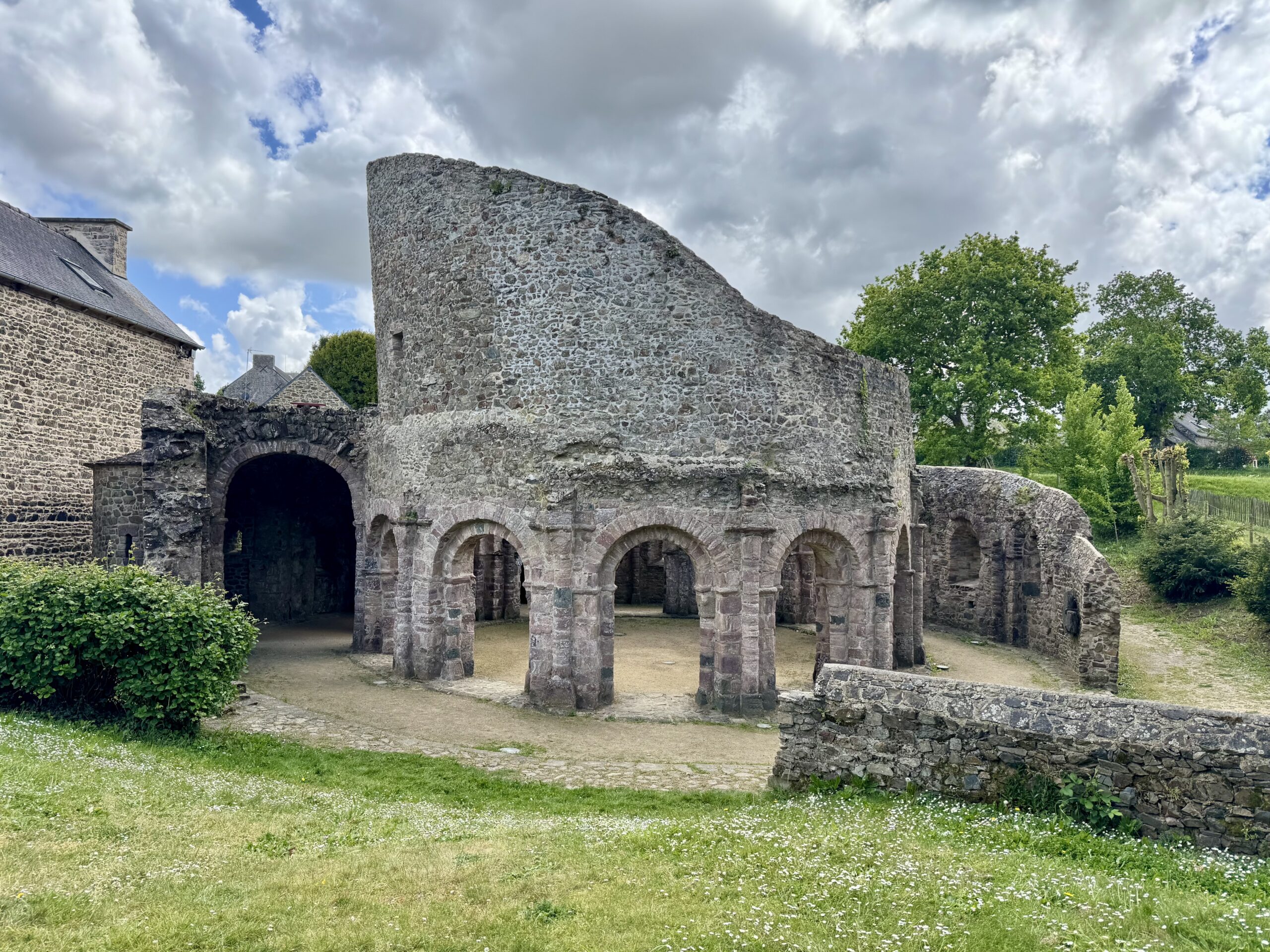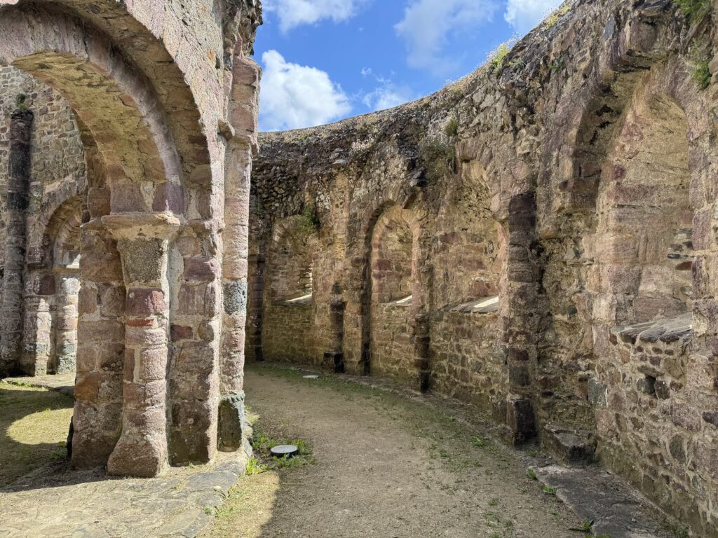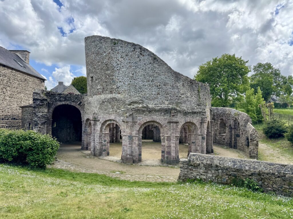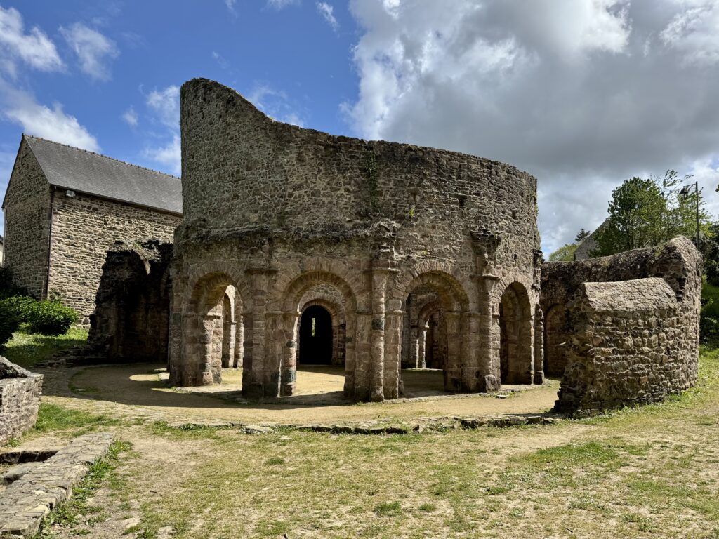 Temple de Lanleff。古代遺跡のような廃墟ですが、彫刻が残っていて、ロマネスク時代の円形教会だと考えられています。