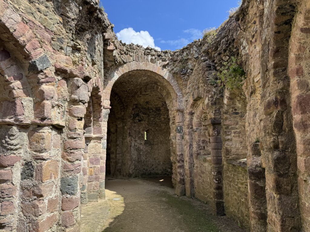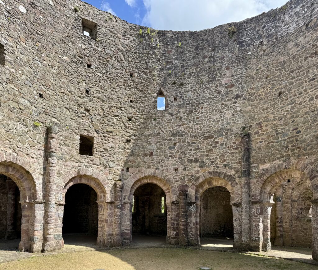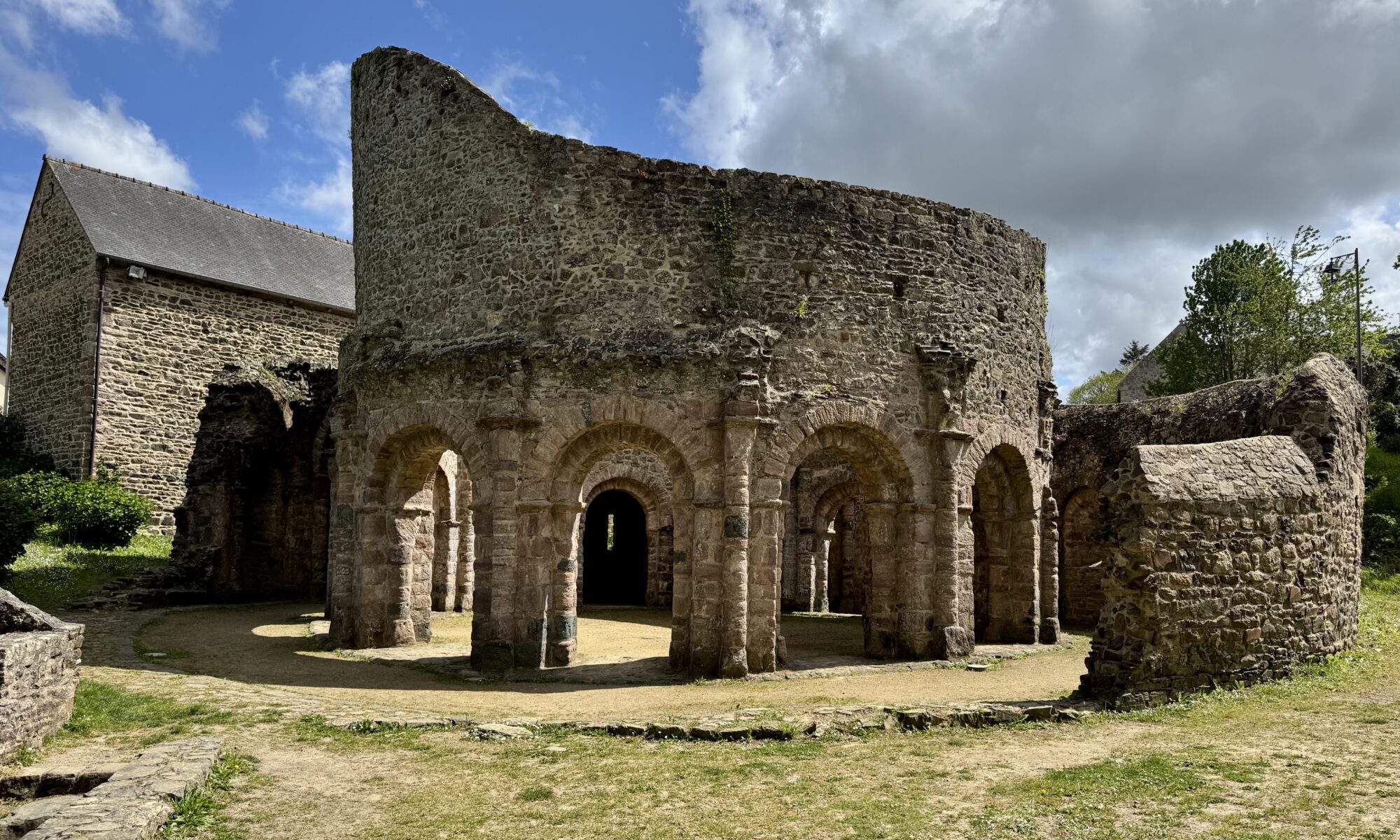 Temple de Lanleff。古代遺跡のような廃墟ですが、彫刻が残っていて、ロマネスク時代の円形教会だと考えられています。