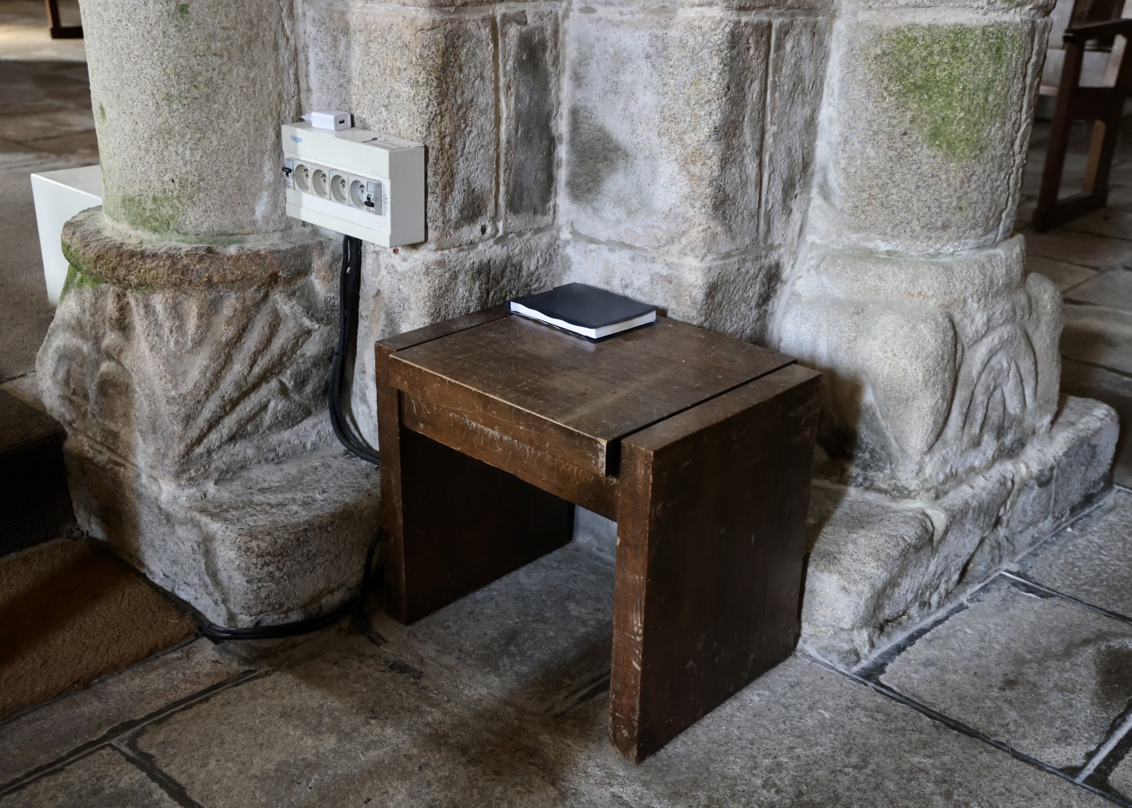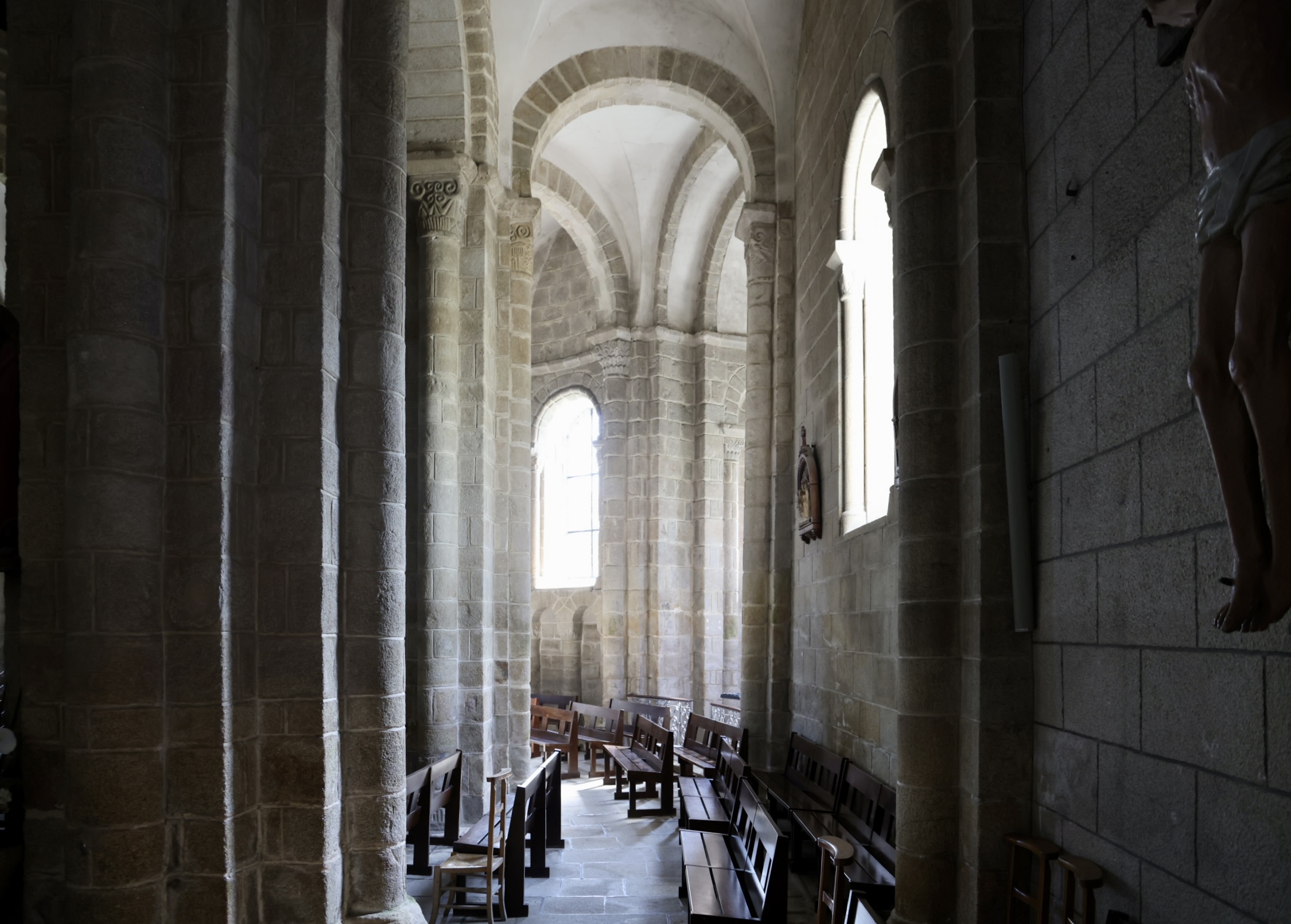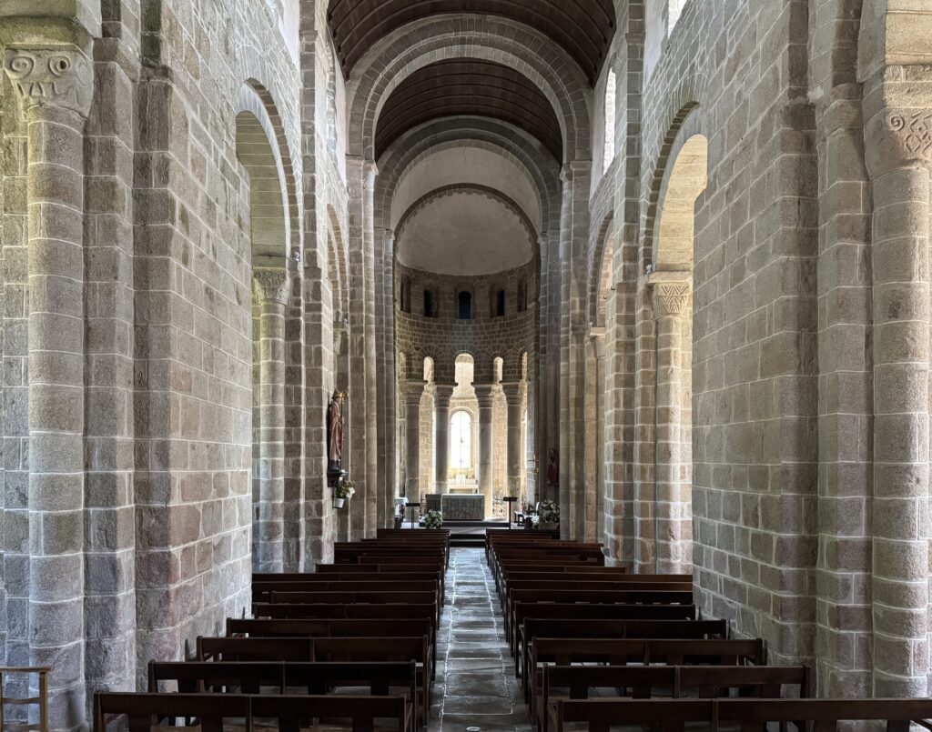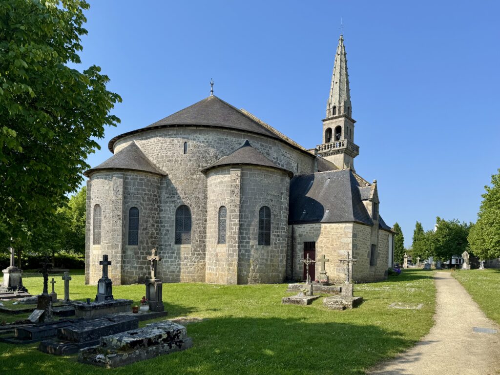 サン=テュディ教会(Église Saint-Tudy)。クワイヤと三つの放射状祭室を持つ周歩廊が美しいです。また、柱頭や柱の基盤に素晴らしい彫刻があります。