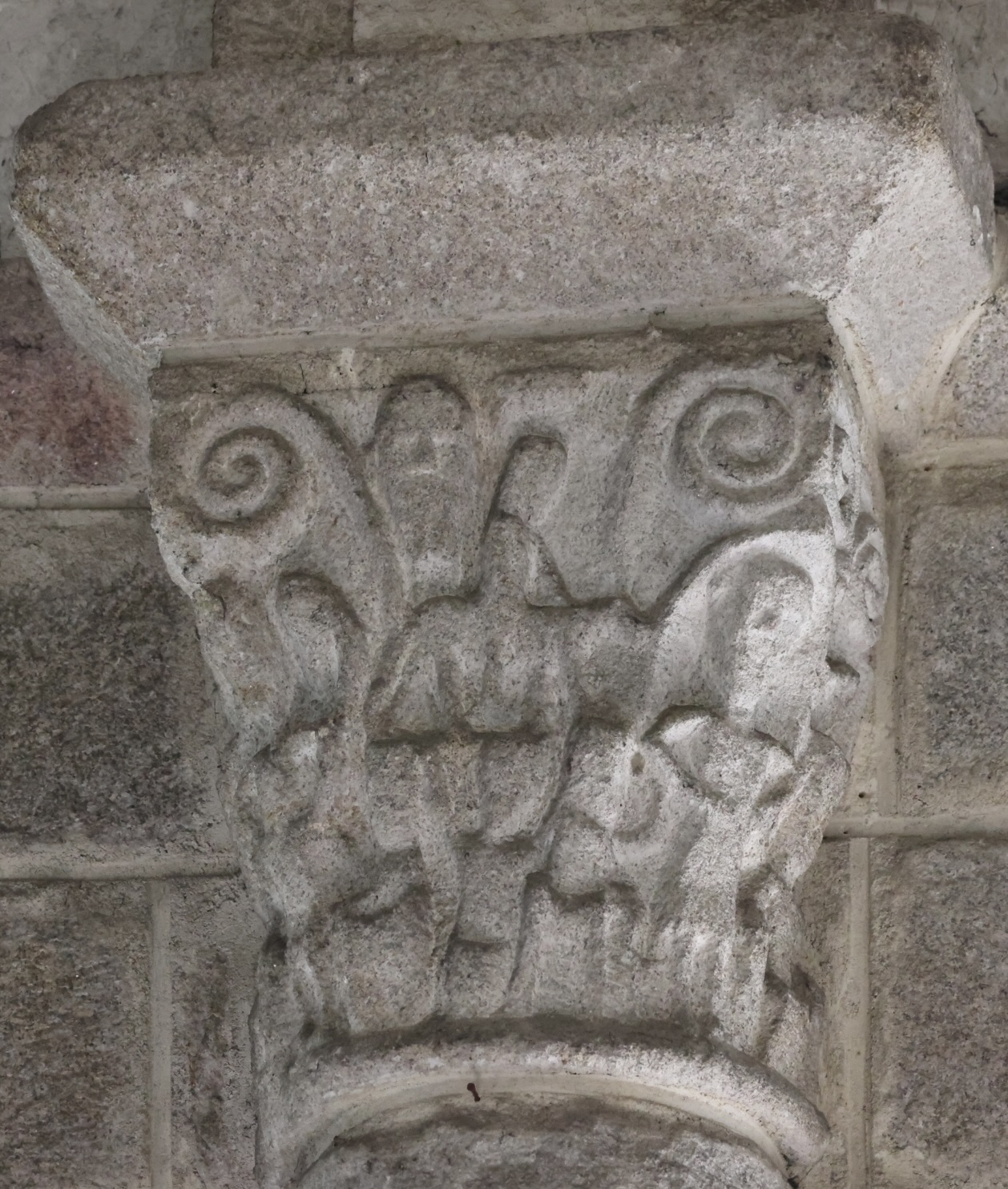 左(北)側から三番目の柱頭は、中央の上部に、三つのアーチが彫られています。