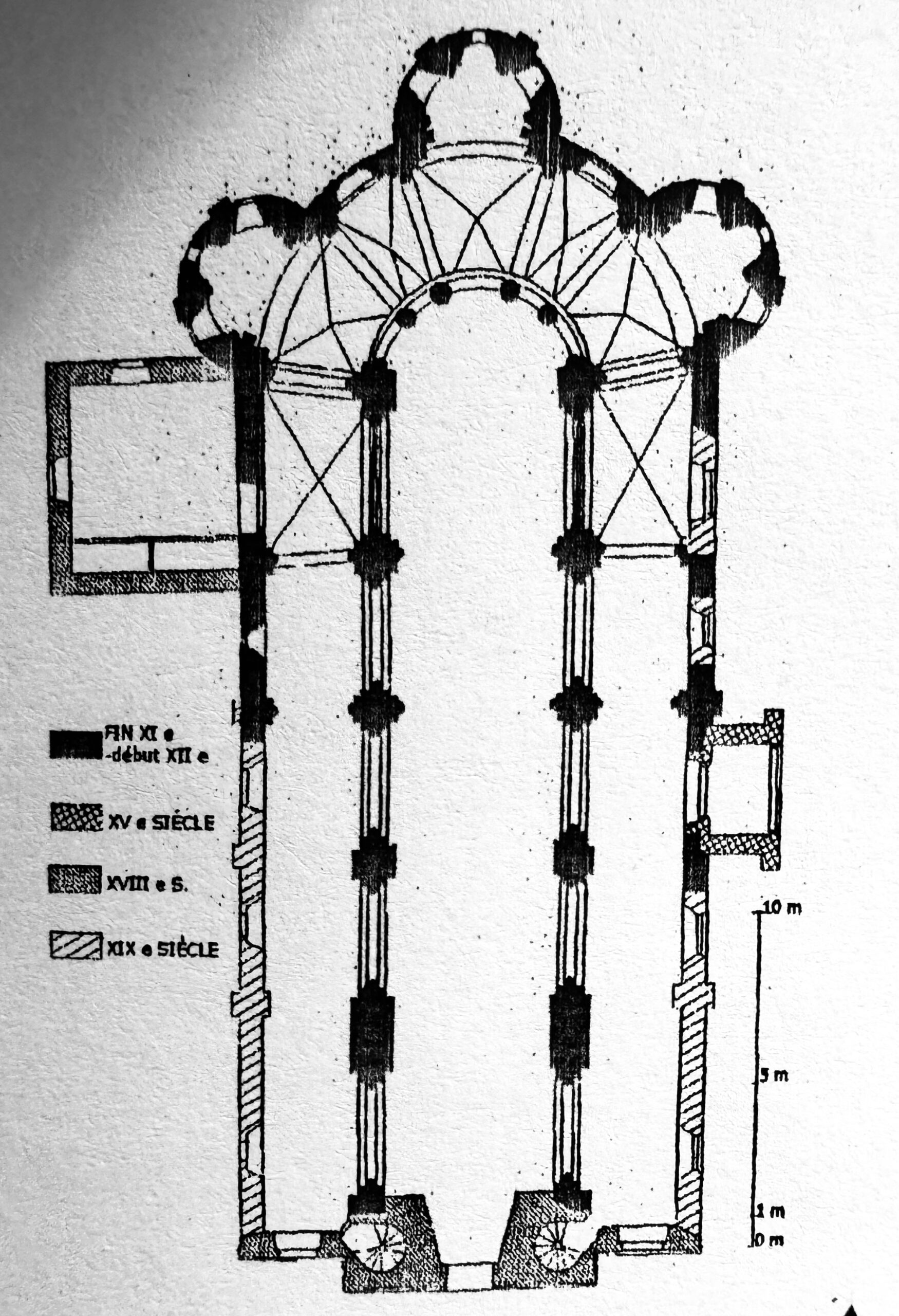 2番目の修道院教会、すなわち現在の建物は、11世紀末から12世紀初頭に建てられた。この教会は、地元産の花崗岩を使った最初の建築物のひとつである。