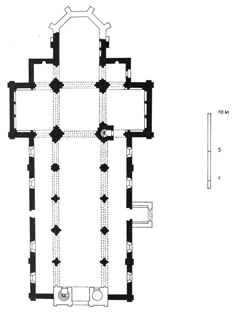 交差部の南西の柱(内部)に階段があります。かつては、交差部の上に鐘楼がありました。