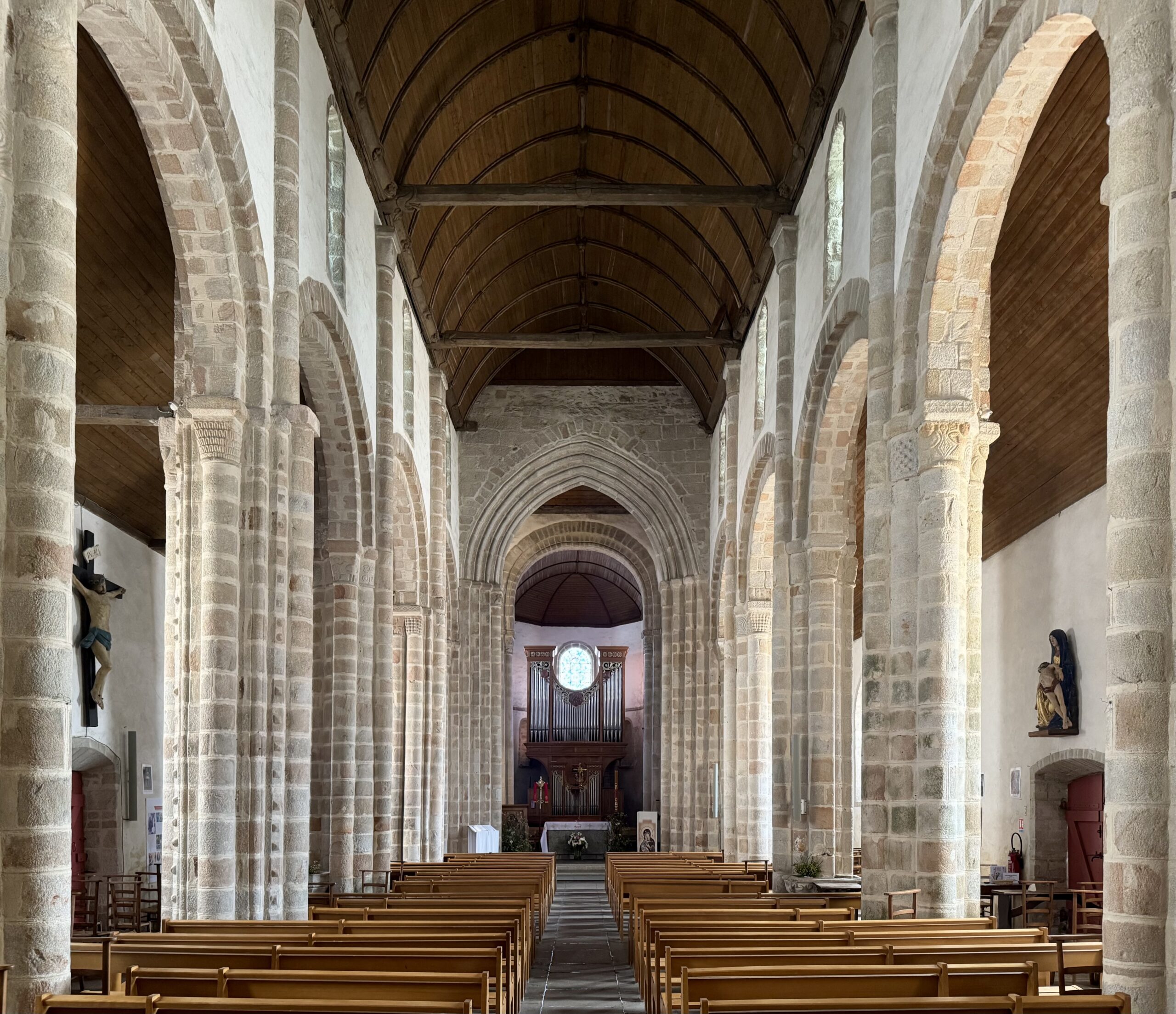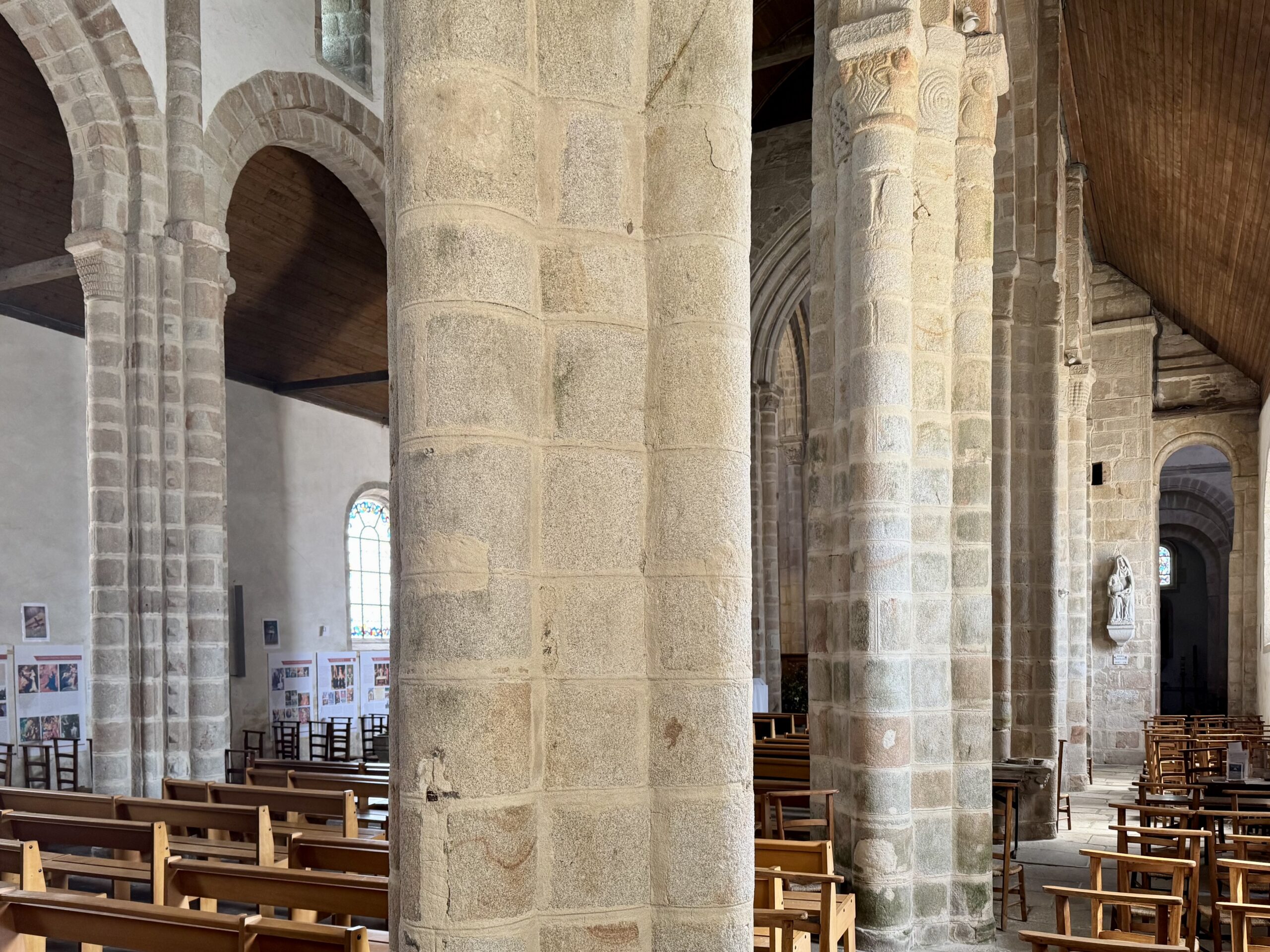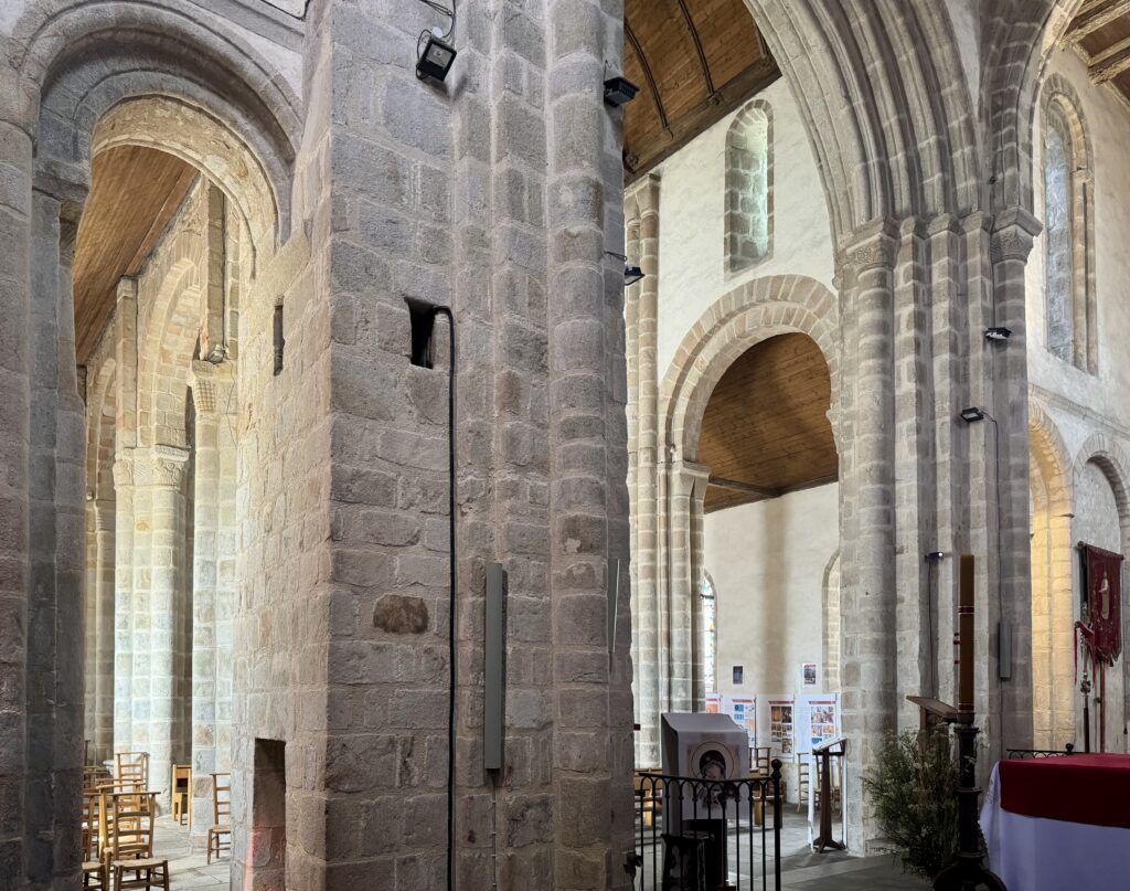 身廊のアーチは二重で、高い位置にあります。そのアーチを支える柱は、4本の半柱に囲まれています。