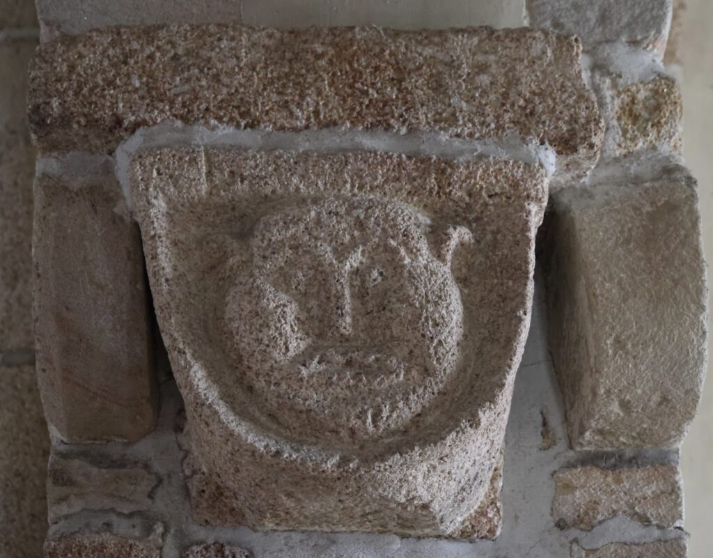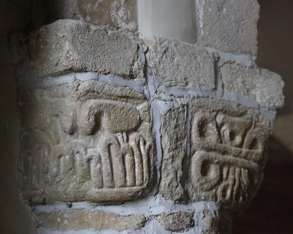 人物の顔が彫られた柱頭もあります。
