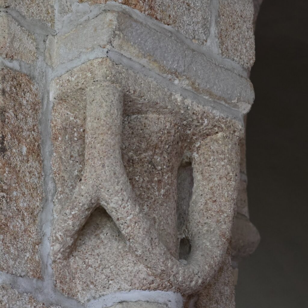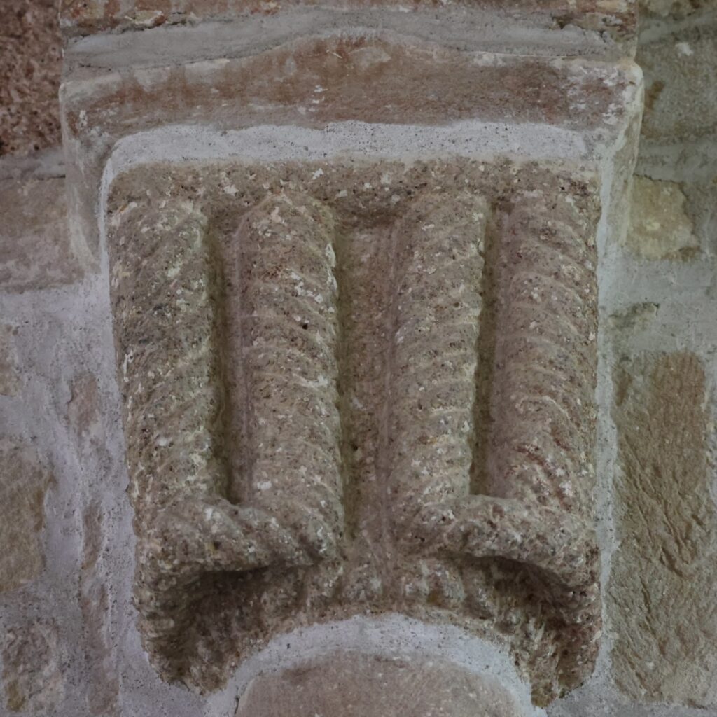 ロマネスク様式の支柱が残っているのは、南(右)側です。4本の柱のうち、2本は円柱で、2本は十字形です。