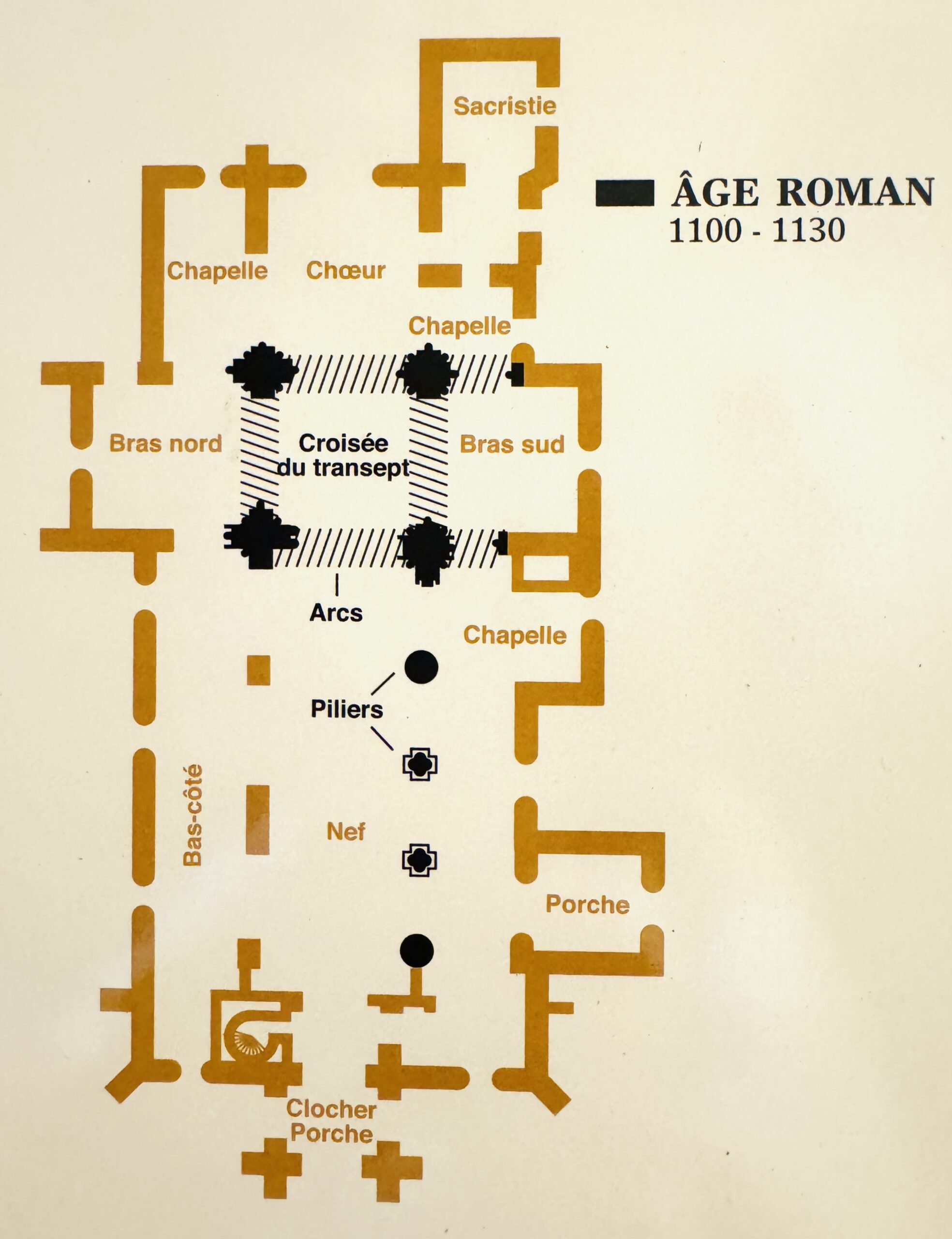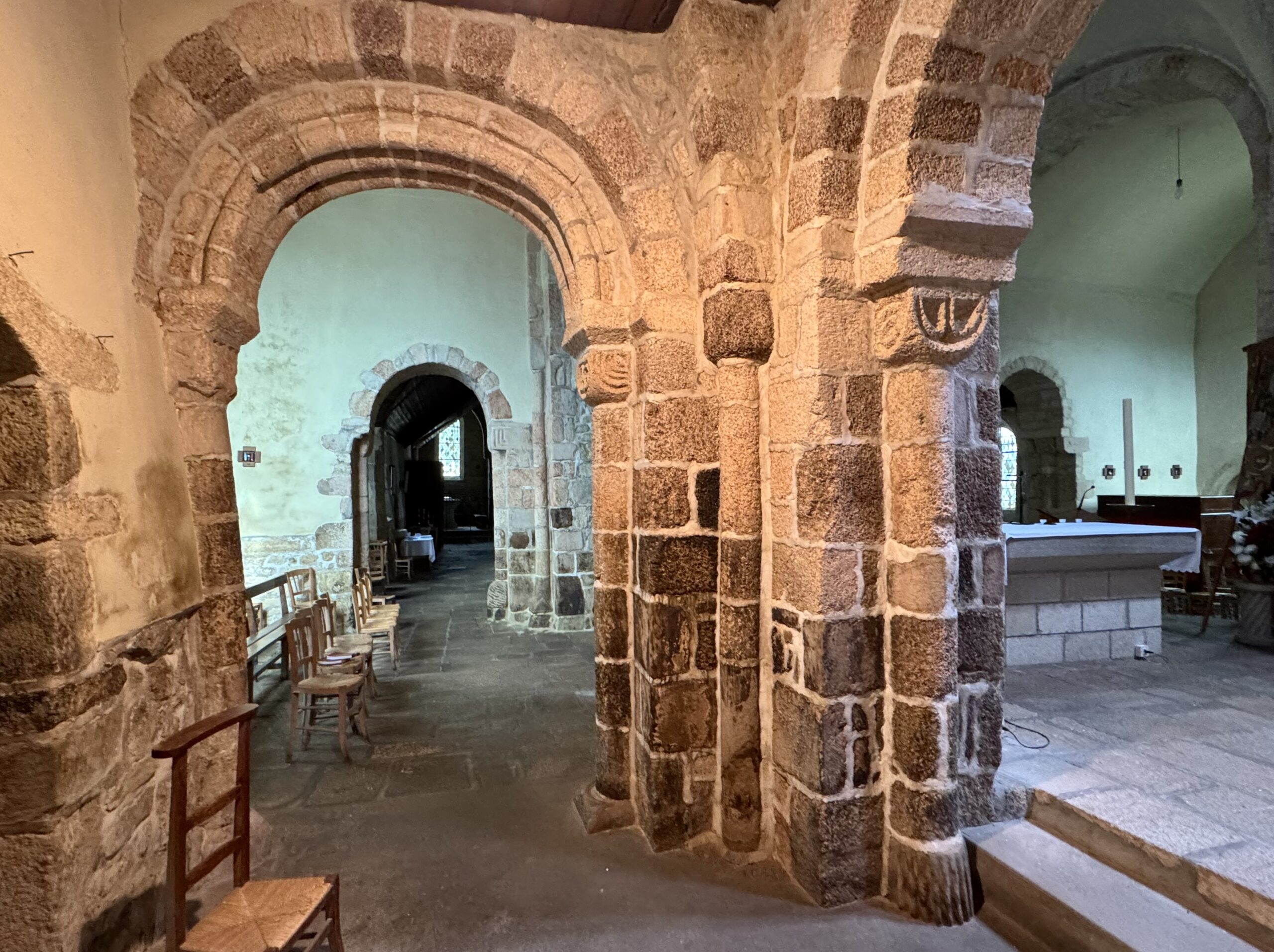 当初のロマネスク教会は、フエナン(Fouesnant)のような、クワイヤの両側に正方形の小後陣がある平面図だったのかもしれません。