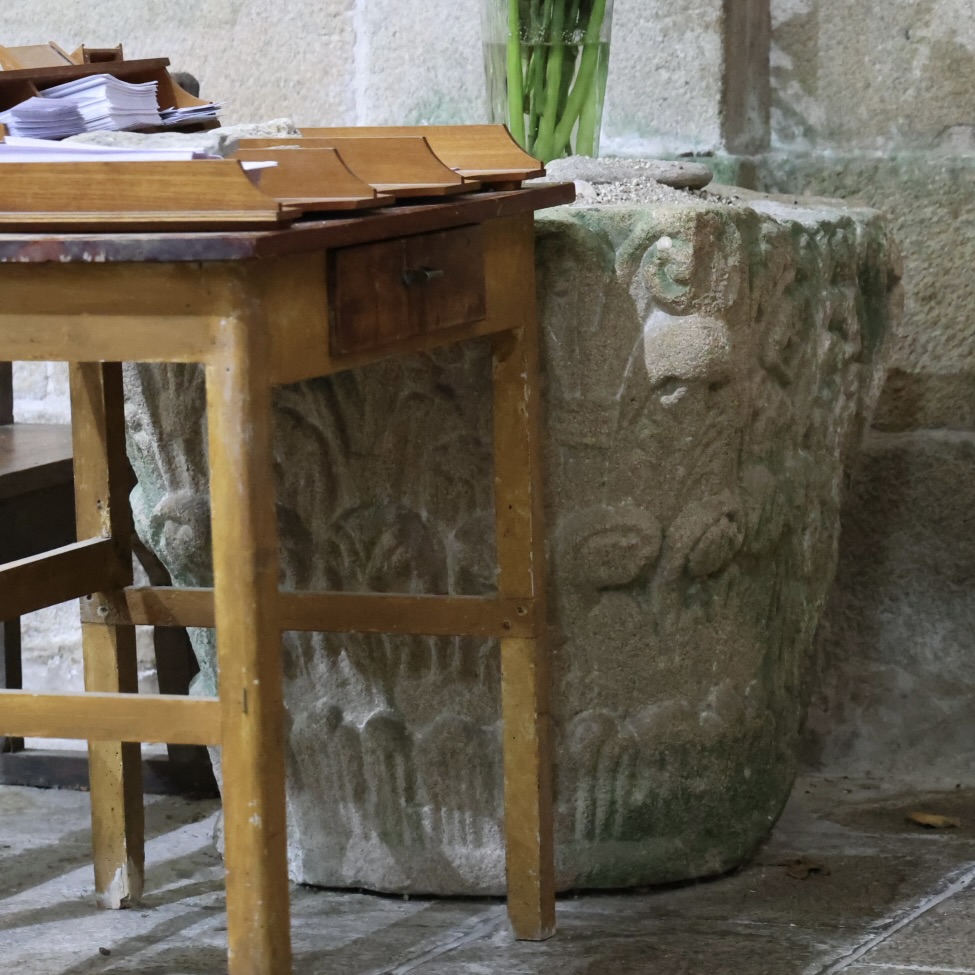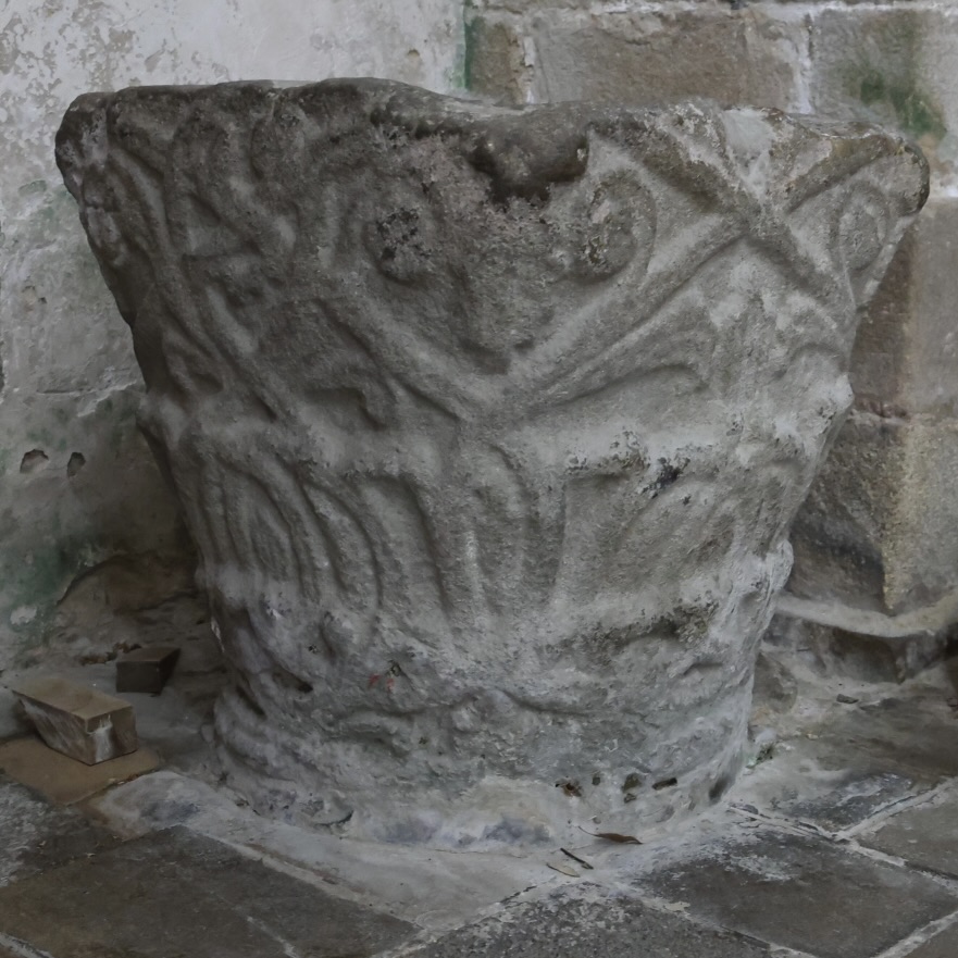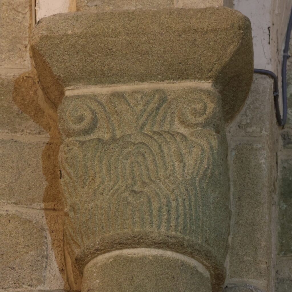 それらの柱頭のうち二つは、聖水盤として再利用されています。